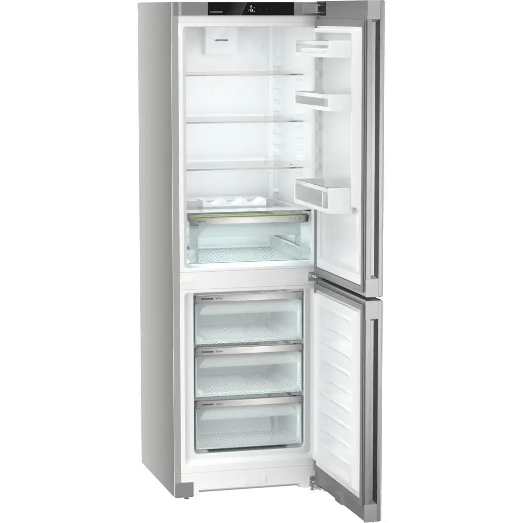 LIEBHERR CNsff 5203-22 001 Pure создан для тех, кому важны вместительность, экономичность и продуманная эргономика. Технологии серии BluPerformance ориентированы на эффективное охлаждение при низком уровне шума, удобство обслуживания и современный внешний вид с отделкой SteelFinish. Внутреннее пространство организовано так, чтобы быстро находить продукты и легко менять конфигурацию полок.