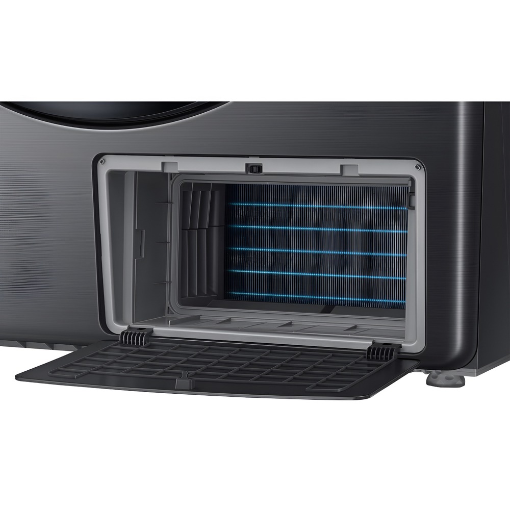 • Удобство интеграции в систему умного дома: Поддержка приложения SmartThings позволяет запускать и контролировать процесс сушки удаленно со смартфона, получать уведомления и управлять машиной с помощью голосовых помощников. Трехслойная фильтрация упрощает уход, защищая теплообменник и сохраняя эффективность работы.